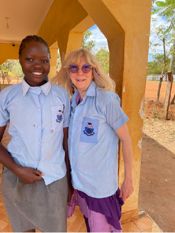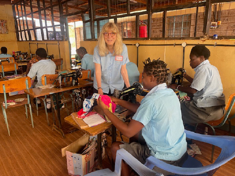 I am Sandy Bonds, a Board member and retired costume designer. My husband, Joseph Gilg, a Makindu volunteers, and I, journeyed to Makindu Advanced Training College October 26-November 9, 2025. We had visited before in 2022 and were excited to return. I came prepared to share in teaching sewing and pattern techniques with resident instructors Dorcas Mutokaa and Grace., I also planned to suggest new projects for the students to construct to sell in the new store building built with funds from Makindu Vocational Program donors.