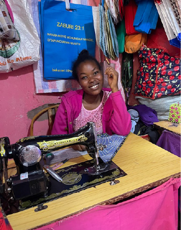When shopping for fabric in town, Dorcas and I met two graduates who had been students when I was there before. They recognized the fabric on the bag I was carrying as they had been a part of that project. These grads both have jobs in Makindu tailoring and dressmaking shops.